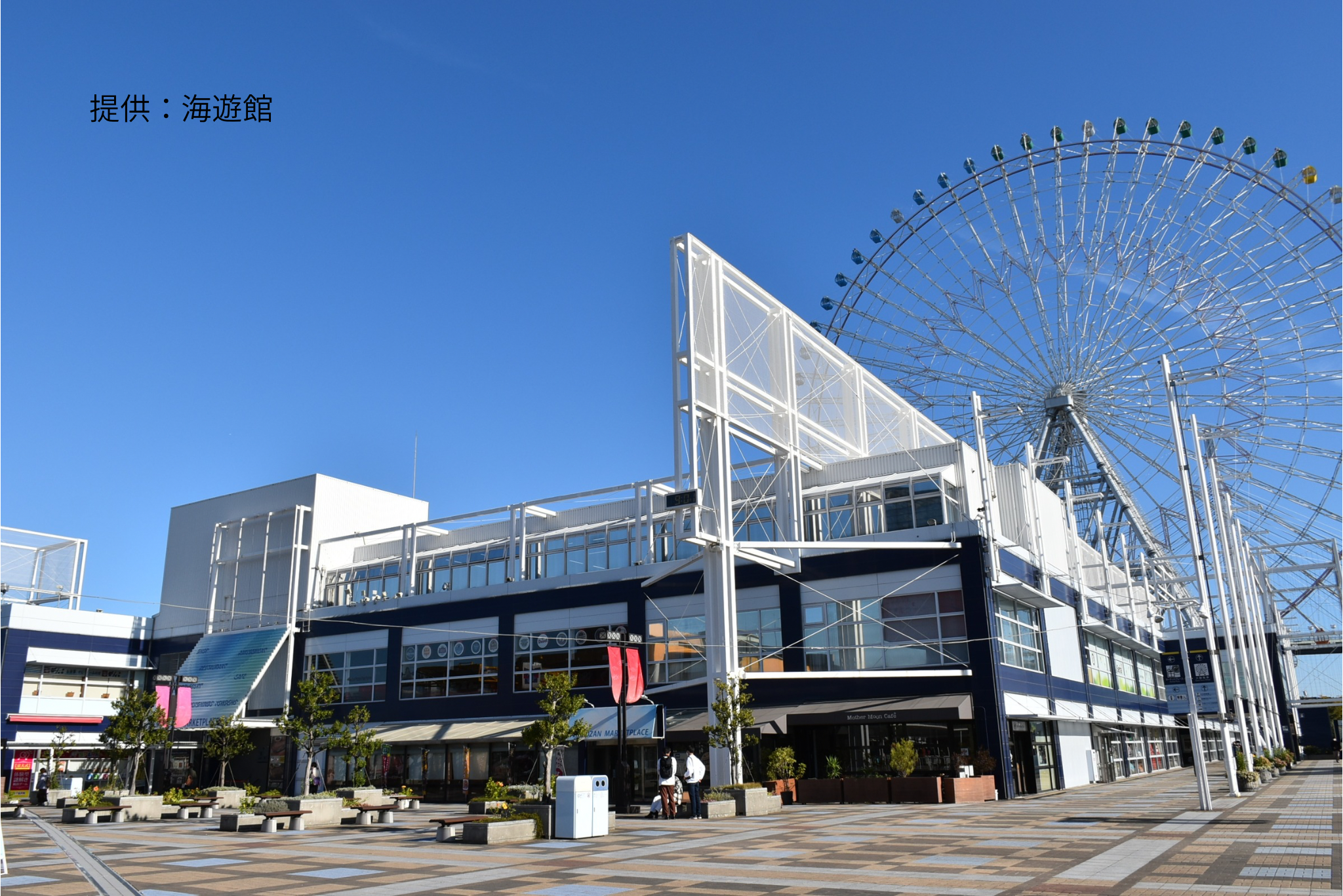 周辺には海遊館や大観覧車など、さまざまな施設があるマーケットプレースです。観光やご飯、休憩にぜひお立ち寄りください。