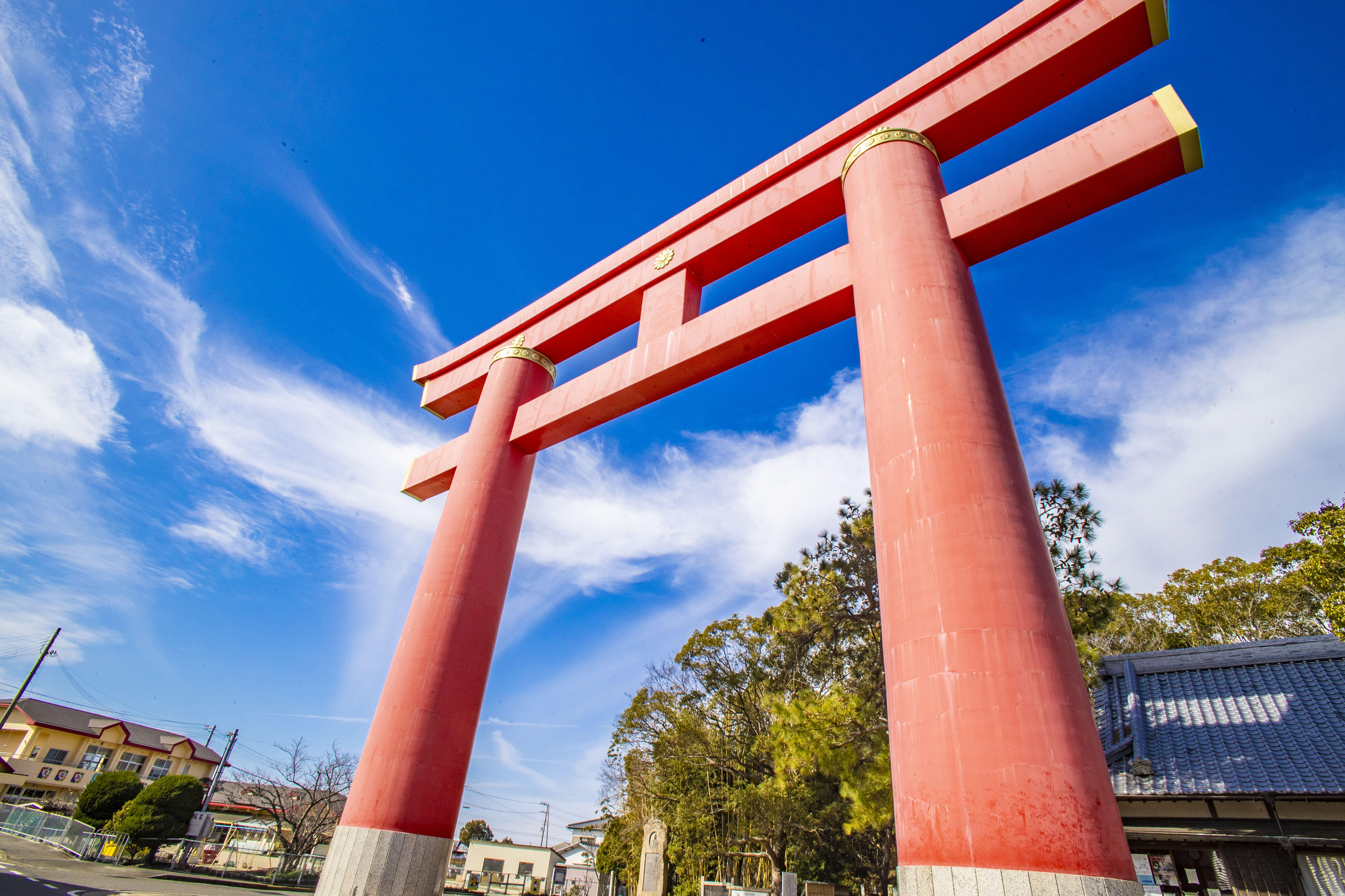 高さ21.7mの朱塗りの大鳥居が圧倒的な存在感を放つ神社で、日本神話において伊弉諾尊と伊弉冉尊が最初に国生みをしたと伝えられる地に鎮座。縁結びなどのご利益があるとされます。