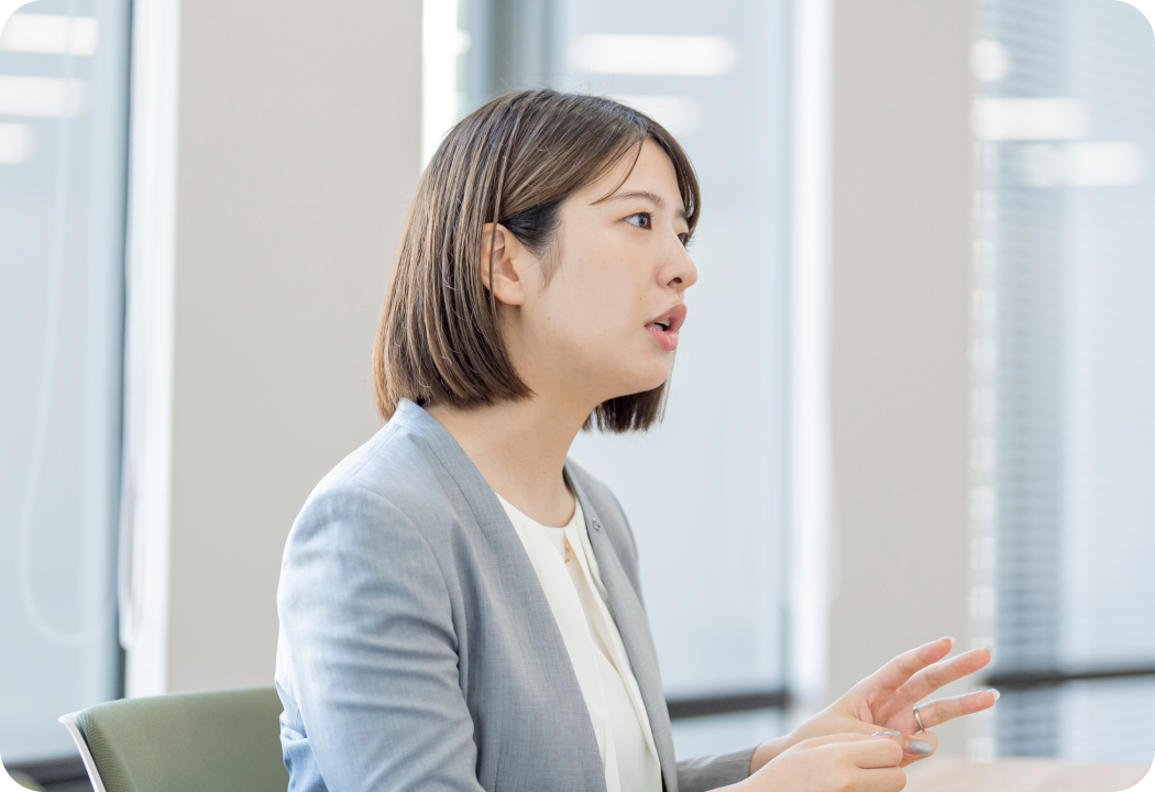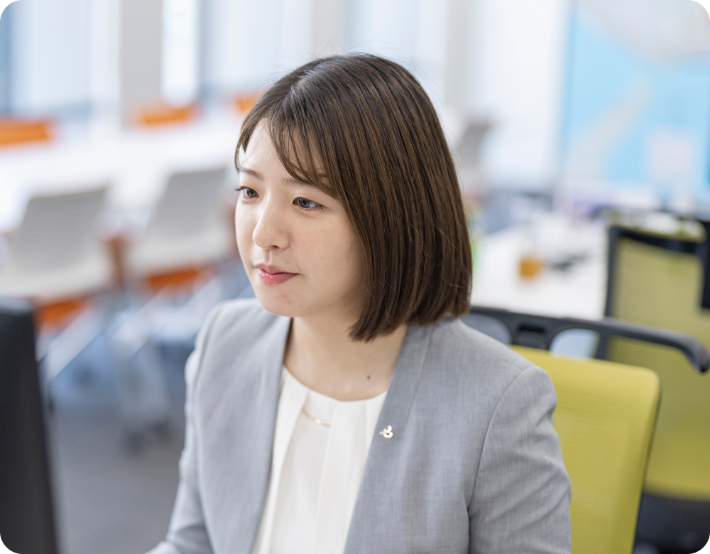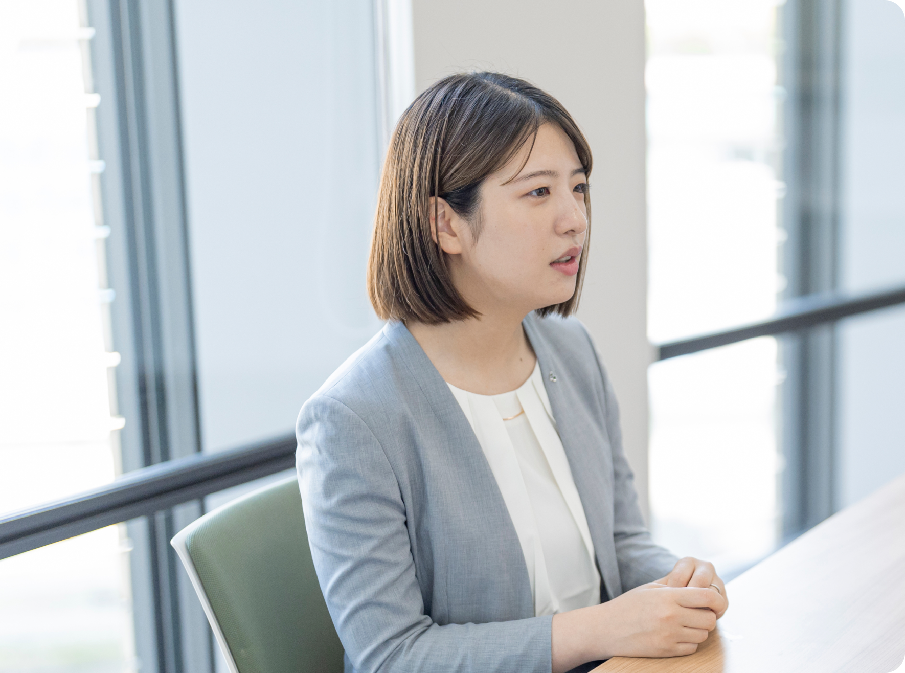 入社4年目となりましたが、日々の業務を進める中で、分からないことや知らないことにぶつかることがまだ多くあります。そんな時は、一人で考え込むより、人と話すことで気づけることがたくさんあると思っていますので、悩みや疑問に思うことは声に出して共有し、解決策を探すようにしています。また、他の人の意見や話に耳を傾けることも大切にしています。いろいろなことに興味を持ち、周りの何気ない会話に聞き耳も立てつつ、新しいものを吸収することを「当たり前」とするように努力しています。