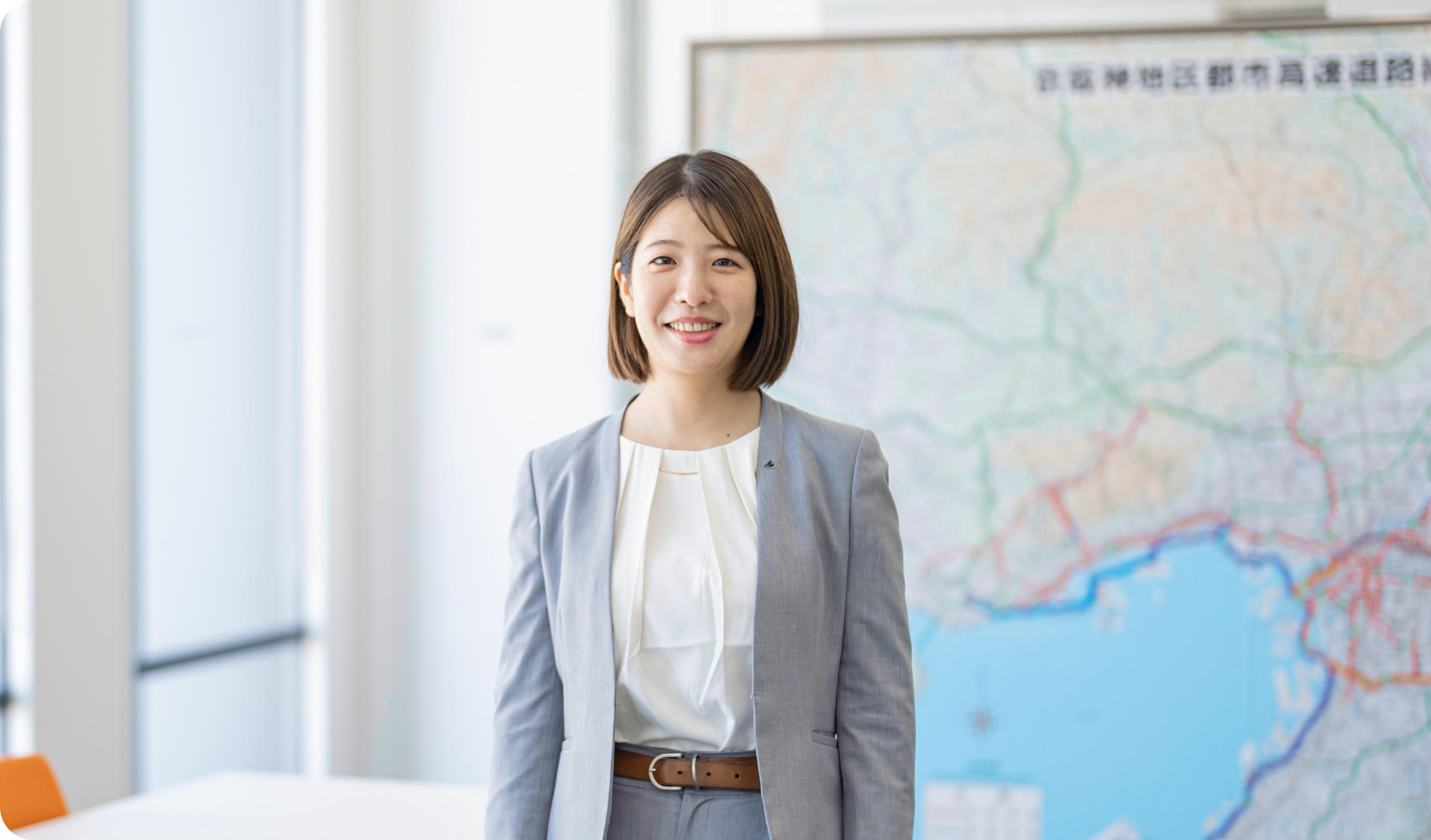 将来の阪神高速道路ネットワークが、お客さまにとって「当たり前」に便利・快適にご利用いただけるものとするべく、日々の業務に取り組んでいきます。建設中の新規路線について、事業が円滑に進むよう尽力していくのはもちろんですが、将来的にどのような高速道路ネットワークがあるとお客さまにとってより便利で快適な道路サービスを提供できるのか、若手で考える勉強会にも参加しています。未来の道路づくり、未来のまちづくりに貢献できることが、この仕事のやりがいです。