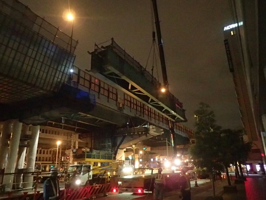 信濃橋入路の改築に伴う、既設入路桁の撤去が完了しました。