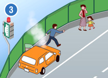 - 特に、下記のような場面で、後方から来た車にはねられ死亡する事故が多発しています。