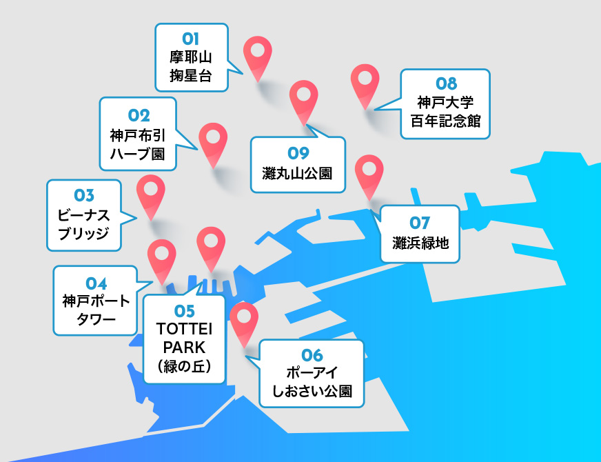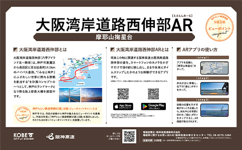 「神戸らしい眺望景観50選.10選」に選定されたビューポイントであることを広く伝え、また、ビューポイントに訪れて楽しんでいただけるよう、14か所に「ビューポイントサイン」を設置しています。(設置:神戸市)